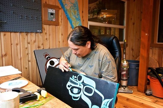 He is a lifelong student of Haida culture which he credits to his parents who had him singing and dancing in the Rediscovery program, and in Claude Davidsons Dance Groups in the early 1980s. His late Mother Leona Edenshaw [ Squee ] and his Gaagi Guuj are his main inspirations in a life of understanding his Haida peoples history, present and future.